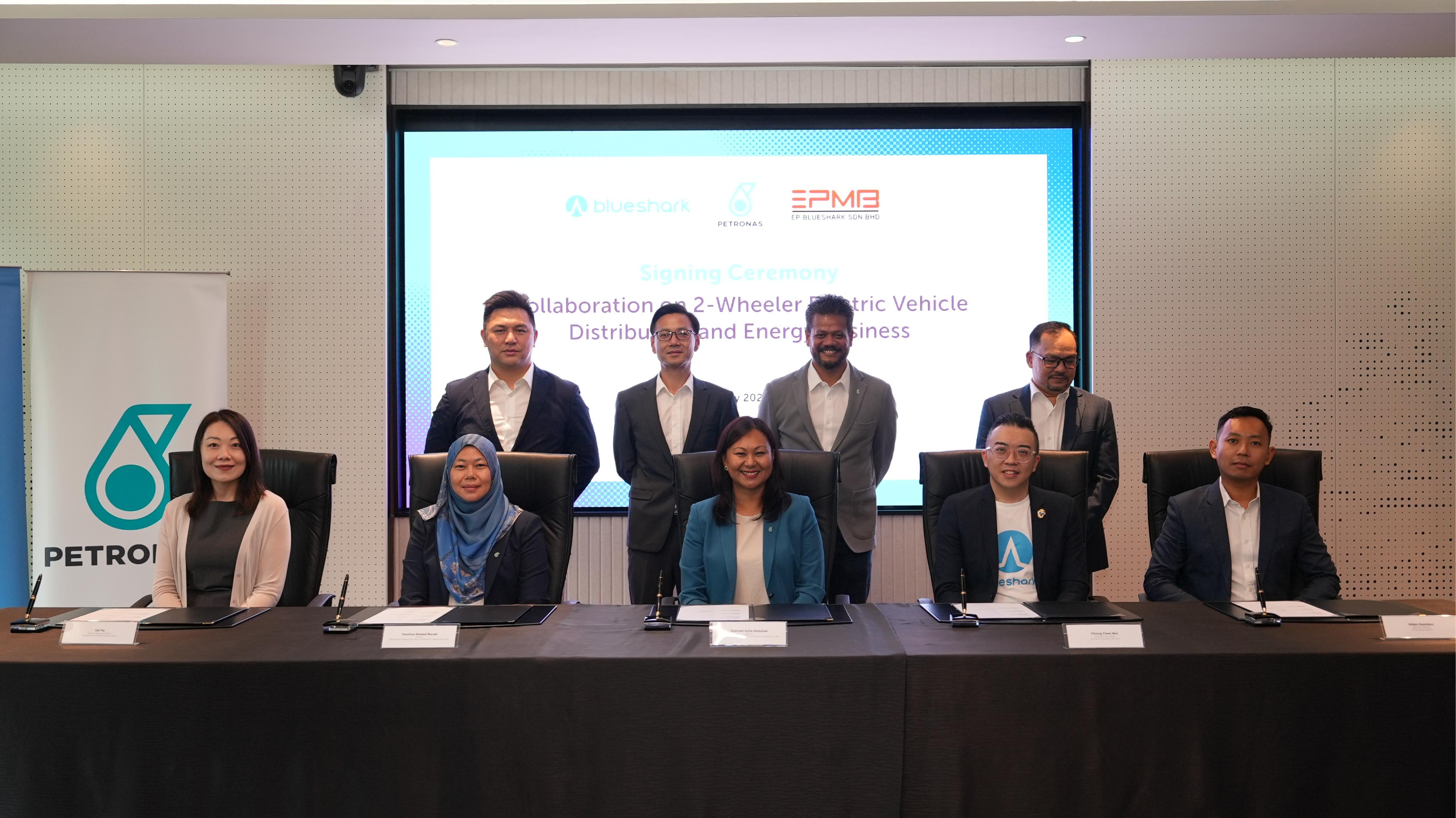 KUALA LUMPUR, 13 MAY 2025 – PETRONAS Dagangan Berhad (PETRONAS Dagangan) and Blueshark Ecosystem Sdn. Bhd. (BESB) have recently entered into a strategic joint venture (JV) to advance the distribution and adoption of electric two-wheelers (2W-EV) and related energy solutions in Malaysia, further supporting the country’s low-carbon mobility agenda.